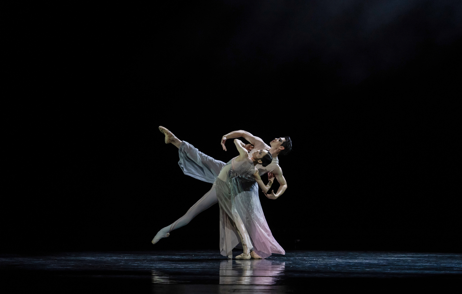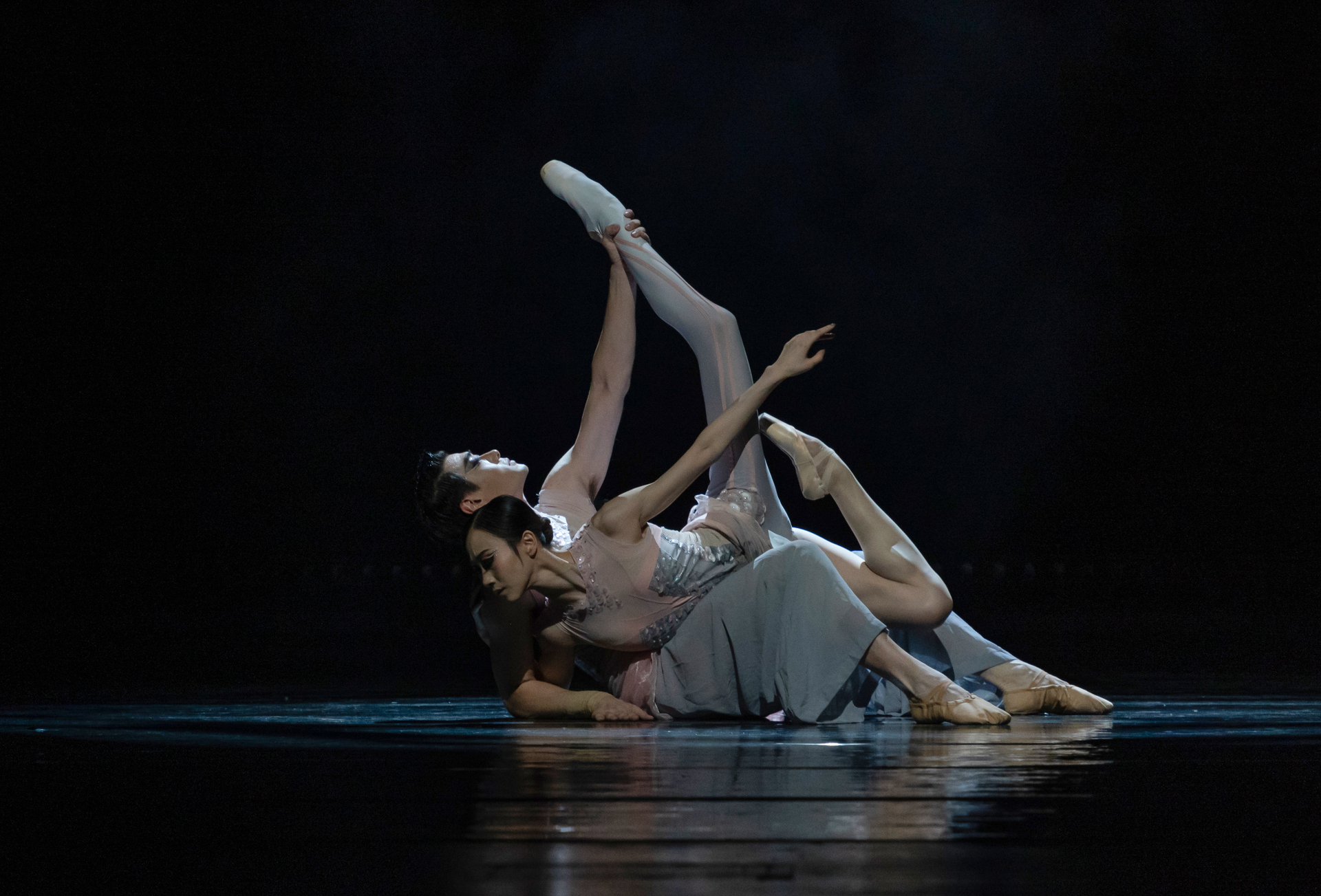 双人舞《鲟·情愫》以“双鱼”为意象,在光与影荡漾的水域幻境中,通过双人舞者缠绵交织、若即若离的舞姿,生动演绎长江流域中华鲟的生命之旅与情感牵绊——时而如缠绕共生的双鱼,时而似分离却始终相引的星辰,以颤抖的指尖与交错的身影,诉说时光深处的情缘流转与生命绵延。作品将中华鲟的保护实践与重庆生态文明建设相融合,在舞姿流转间隐喻自然韵律的往复不息,艺术化地呈现长江流域的生机复苏,传递出人与自然和谐共生的深远愿景。